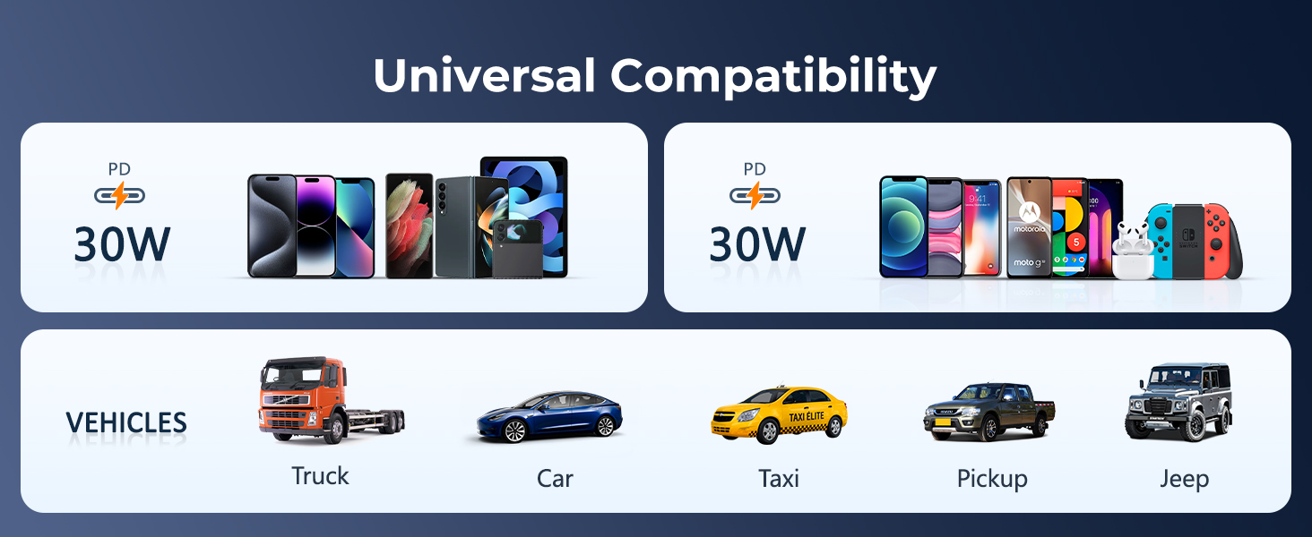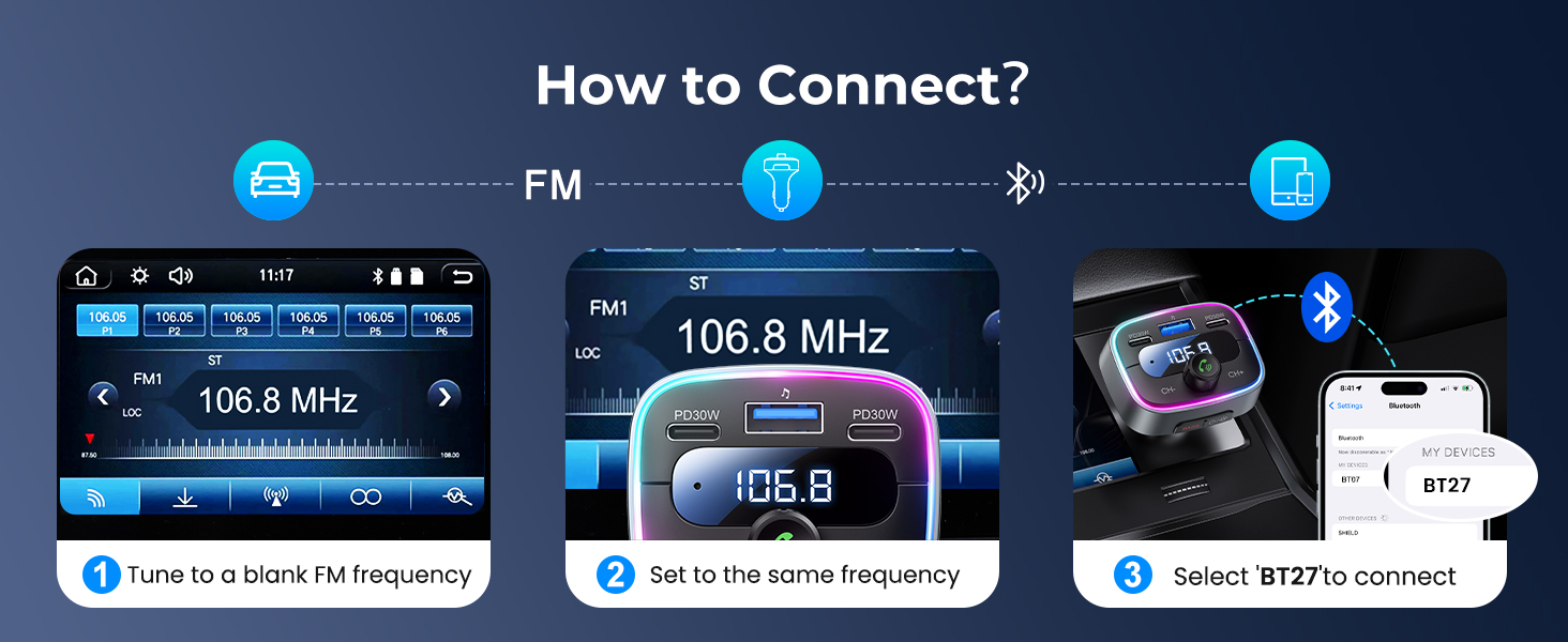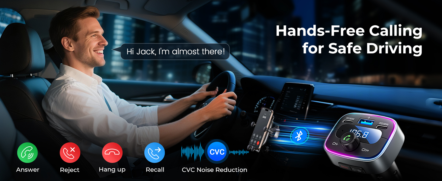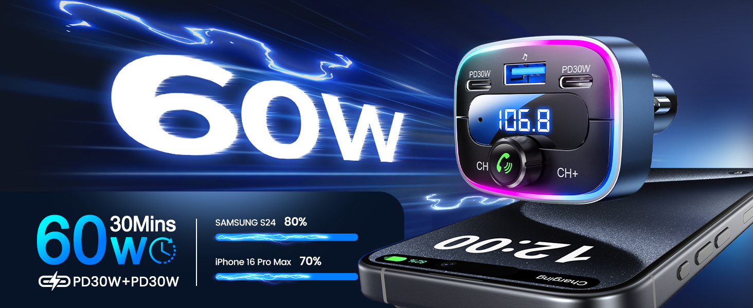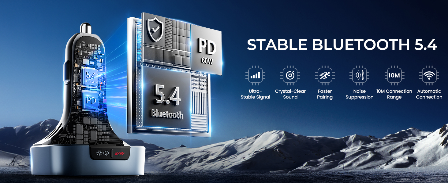ImmersiveDeepBass&Hi-FiSound:Tiredofweak,tinnycaraudio?Simply pressthe‘B’button,LENCENTFMtransmitterbluetoothadapterdeliverspowerful, thumpingbassandcrystal-clearsoundthatmakeseverydrivefeellikeaconcert.Just plugin—andturnyourcarintoyourfavoritemusicspace. IntelligentDual30W|Total60WFastCharging:LENCENTbluetoothadapter autofeaturestwofastchargingUSB-Cportsthateachdeliver30Wofhigh-speedcharging— totaling60Wmaxoutput.Simultaneouslypoweryourphone,tablet,andothergadgetsatfull speed.Getupto70%batteryinjust30minuteswhileyoudrive!Thankstothein-builtover- current,over-voltage,overcharging,overload,overheating,andshort-circuitprotections,you canenjoyastraightforwardandsecureusingexperience. StableBluetooth5.4forMusic&Hans-freeCalls:Enjoyflawlessaudio streamingandcrystal-clearcallswithadvancedBluetooth5.4.Itprovidesafaster,more stable,andsmarterconnection,whilenoisereduction(CVC)technologyandecho cancellationallowanamazinghands-freecallingexperience,ensuringyourmusicand hands-freeconversationsremainuninterruptedontheroad.Experiencerichsoundand powerfulbasswithultra-lowlatency.Inaddition,thisBluetoothadaptersupportsBluetooth andUSBstickplayback(≤64GB). Enrichyourdrivingexperience:ThiscarBluetoothadapterfeaturessoft7-color monochromaticandcolorfulLEDlightmodes,helpingyouquicklylocatethedeviceand createanimmersivemusicatmosphereduringnwithitscompactdesign,thisFM transmitterforcarbluetoothfitsintomostcarcigarettelightersandsavesyouevenmore space.ightdrives.(Alllightscanbeturnedoff.).Thebuilt-involtageindicatorautomatically monitorsyourcar’spowerstatuswhenstartingforenhancedsafetyandreliability.With advancedvoicecommandsupport,enjoytrulyhands-freecontrolforasaferandmore comfortabledrive. Compact&WidelyCompatible:Withitscompactdesign,thisbluetoothFM transmittereasilyfitsintomostcarcigarettelightersandsavesvaluablespace.Its lightweightandportabledesignmakesiteasytotakewithyouwhereveryoudrive.The FMtransmitterautoworkssmoothlywithallkindsofBluetoothdevices—including iPhones,Androidphones,andtablets—andiscompatiblewithmost12V-24Vvehicles, suchascars,trucks,SUVs,andpickups,andmore.