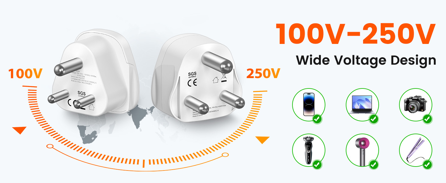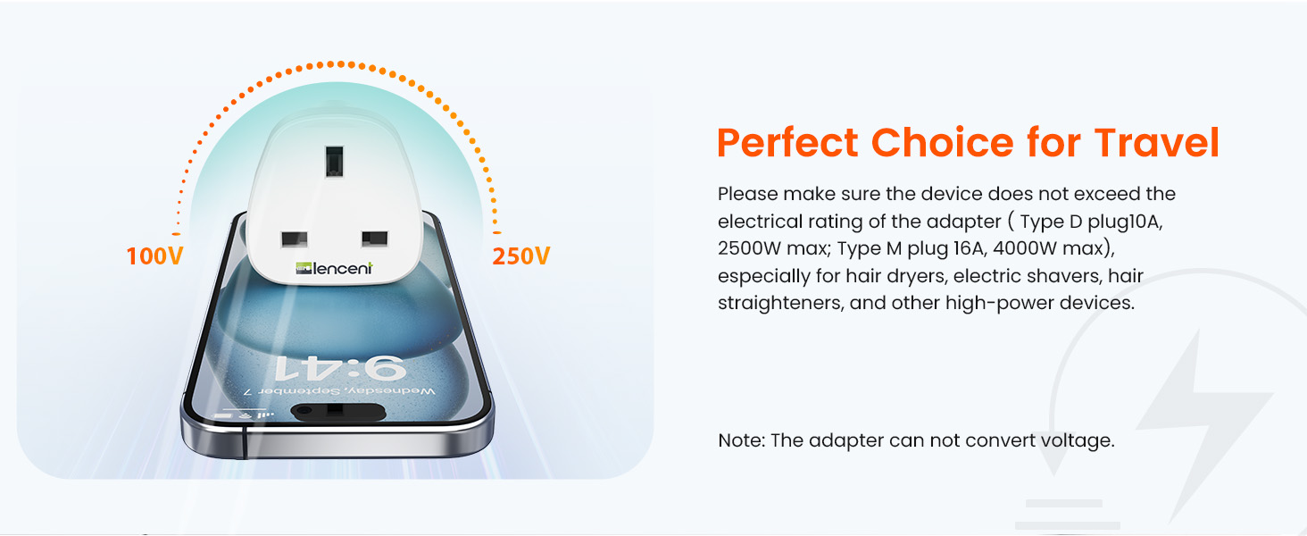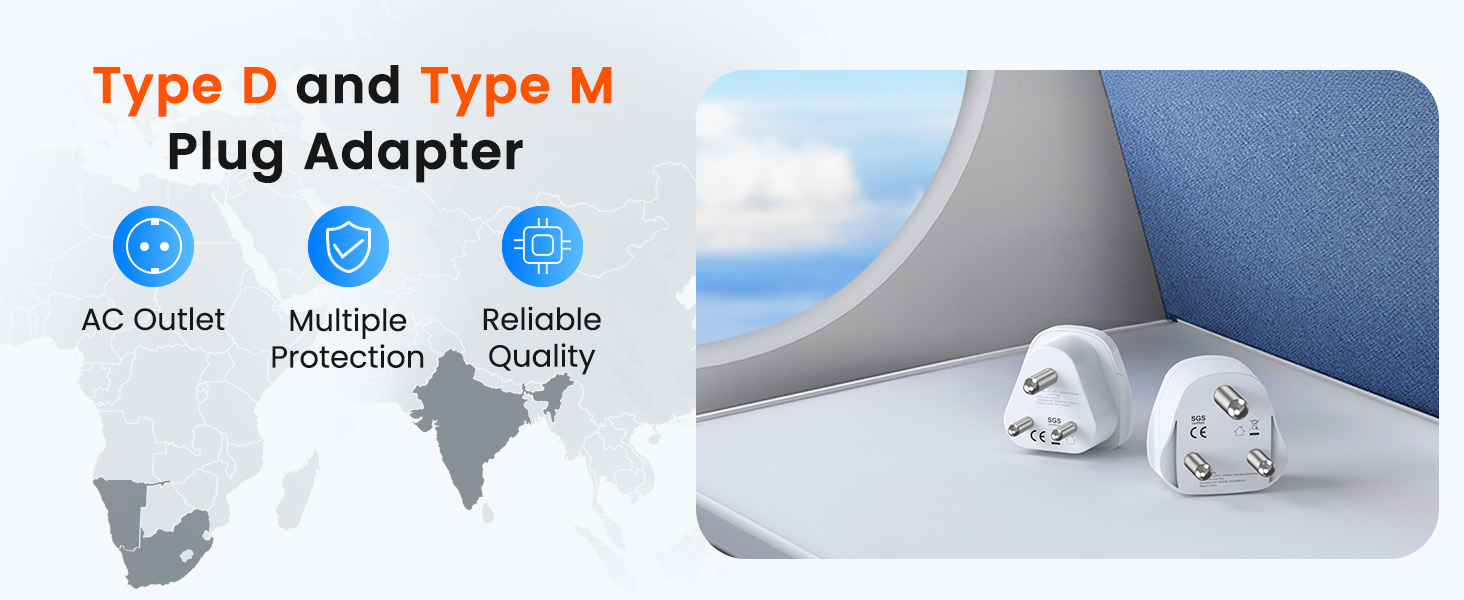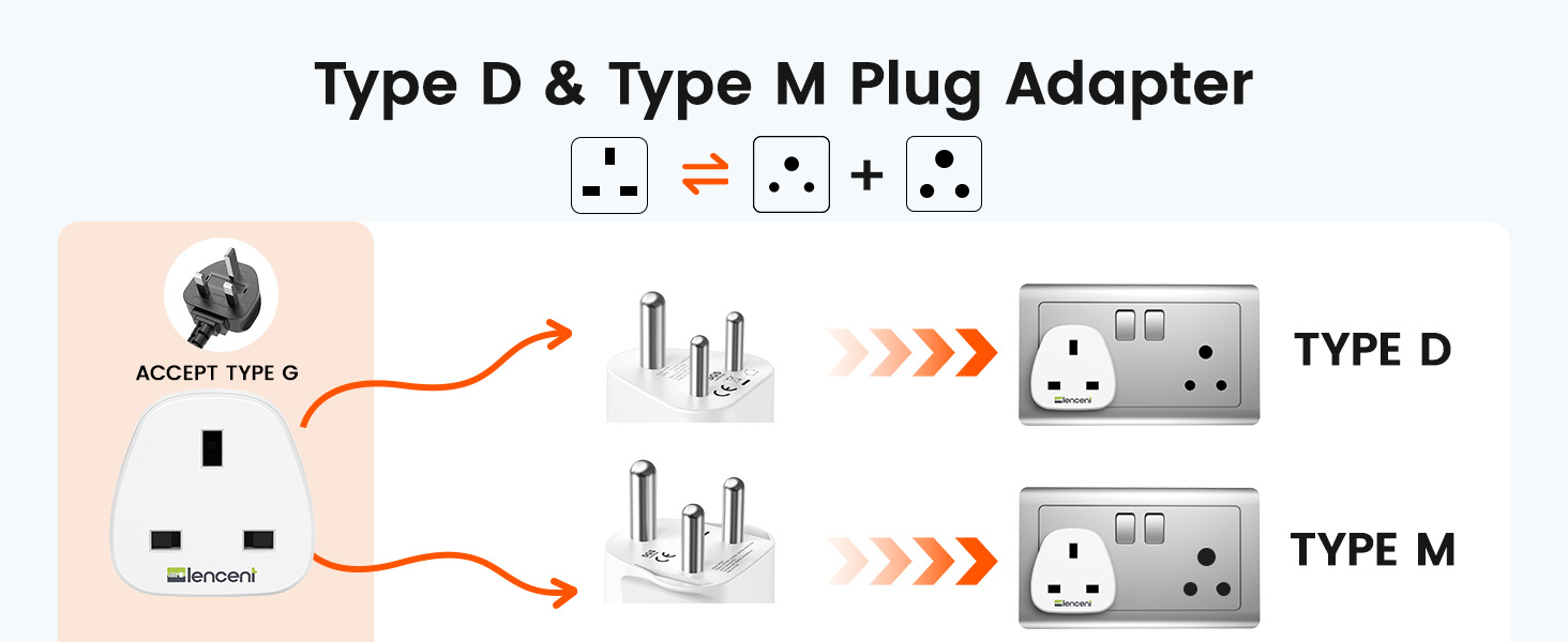 Travel Adapter Type D and M: combination of both plug types, ideal for countries with mixed plug systems Suitable Countries: Namibia, South Africa, India, Nepal etc. Further country lists can be found in the description Enhanced Security Features: Ground protection and fireproof PC materials ensure safety for you and your family as well as a reliable charging process abroad Portable Compact Size: The LENCENT travel plug type d and m is compact and lightweight, fits in any pocket. Whether you are travelling or working abroad, this adapter is your ideal companion and requires little space Wide Compatibility: With this travel adapter you can charge smartphones, razors, powerbanks, iPhones as well as devices such as laptops and hairdryers abroad. The maximum power for the Type D connector is 10 A, 2500 W at 250 V and for the Type M connector 16 A, 4000 W at 250 V